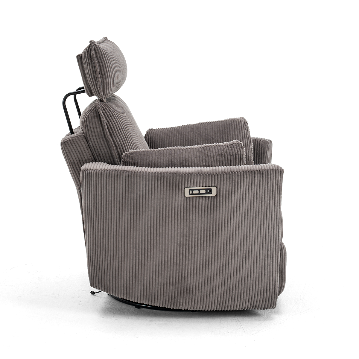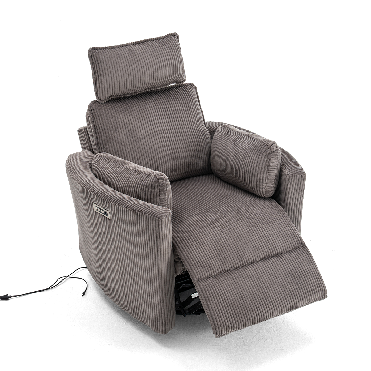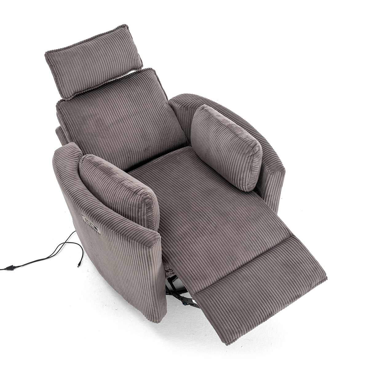 Elektromos, dönthető relax fotel, forgó és hinta funkcióval, barna kordbársony szövet