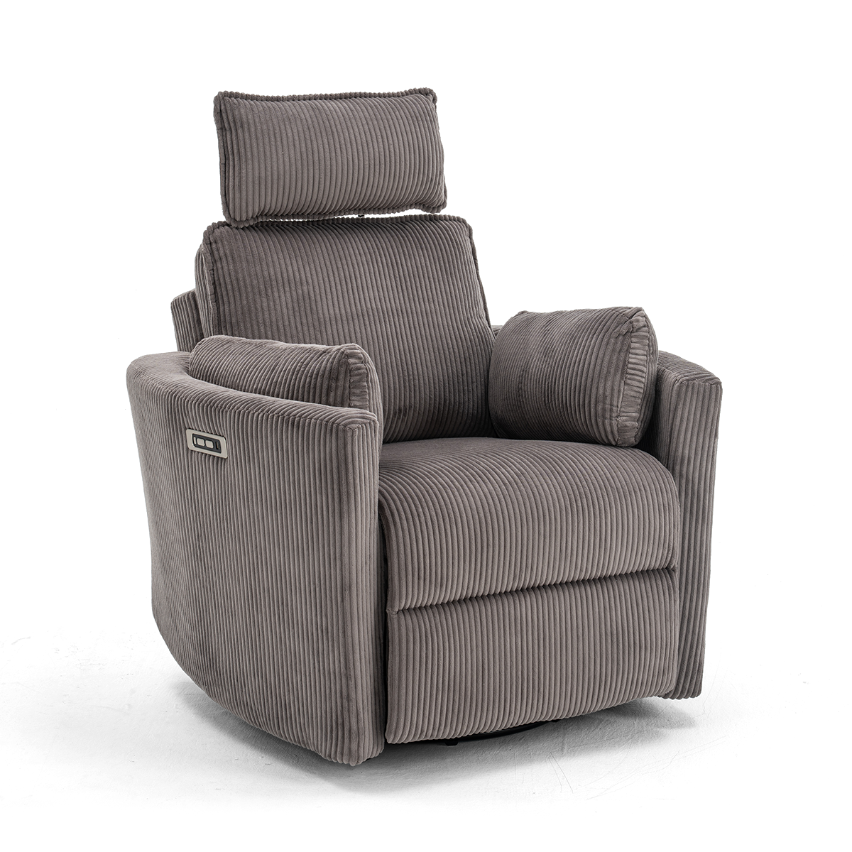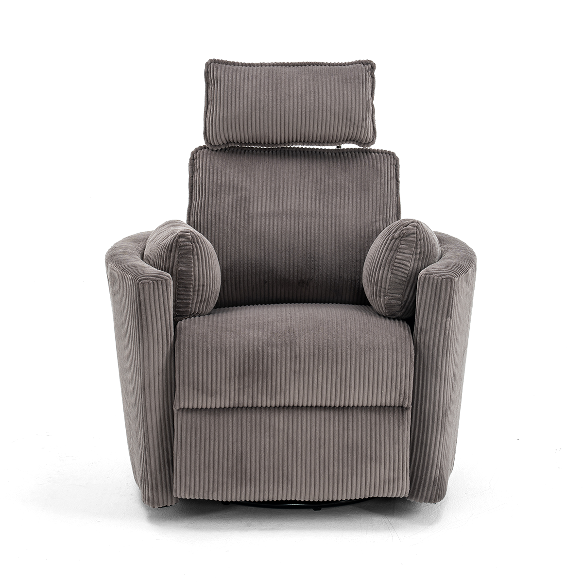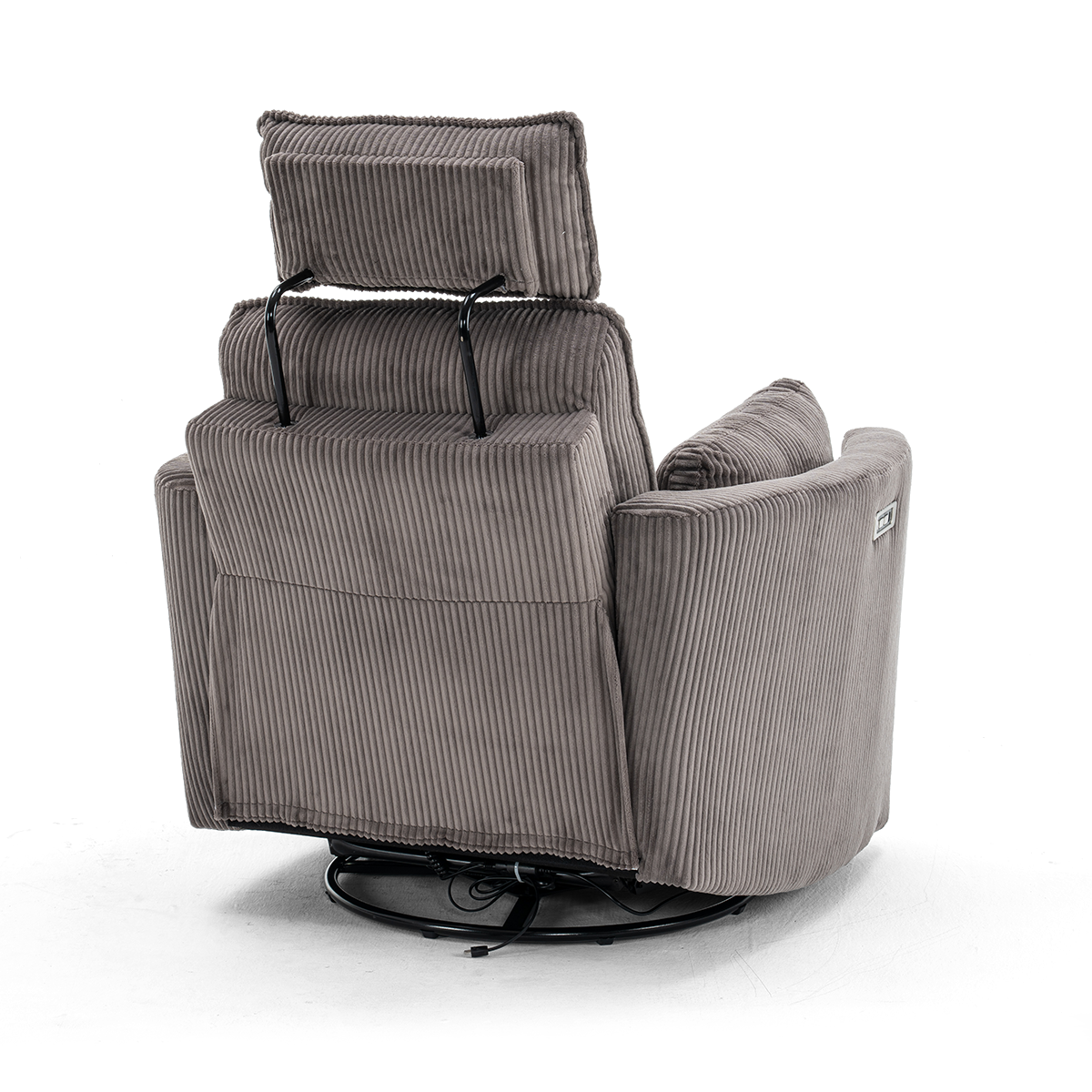 Elektromos, dönthető relax fotel, forgó és hinta funkcióval, barna kordbársony szövet