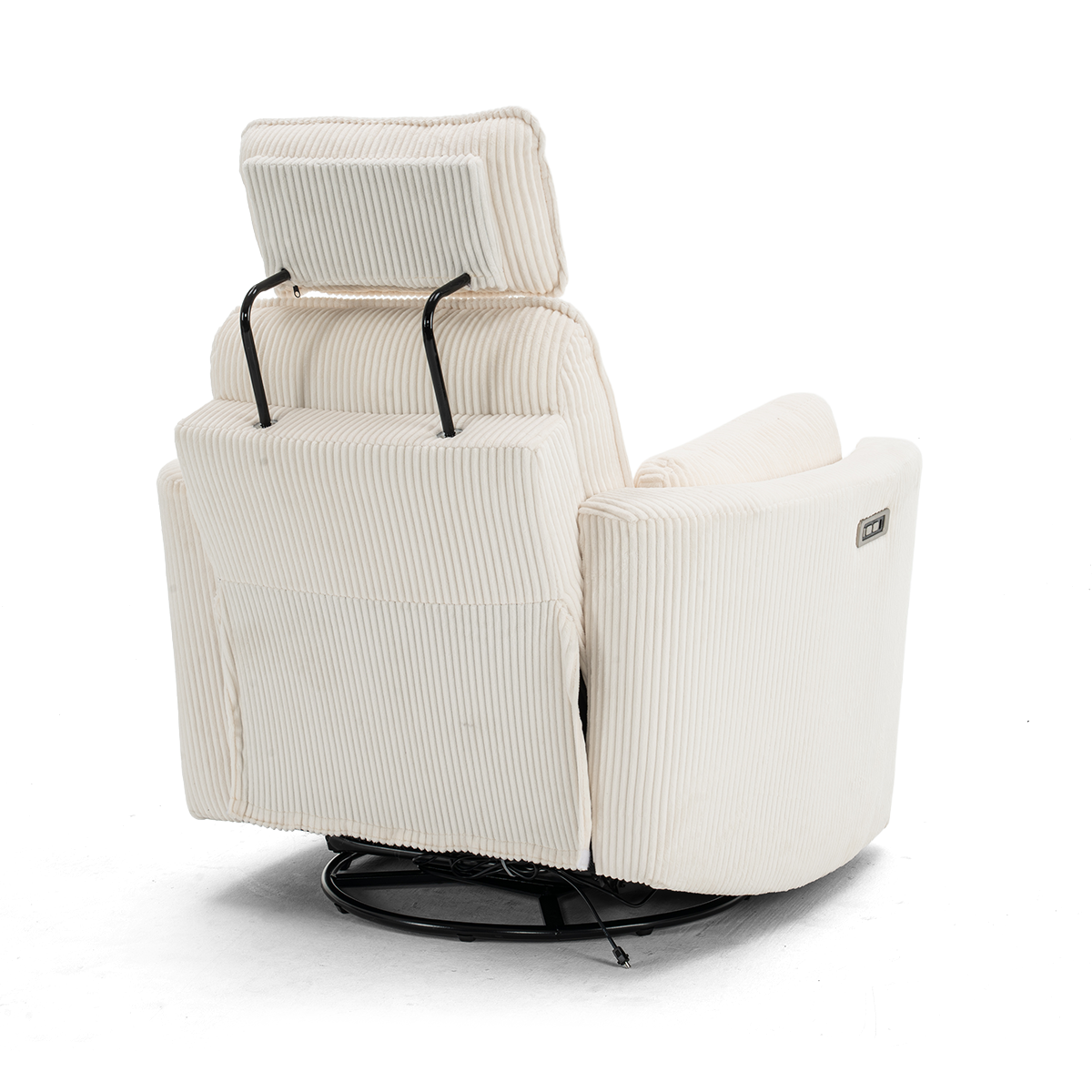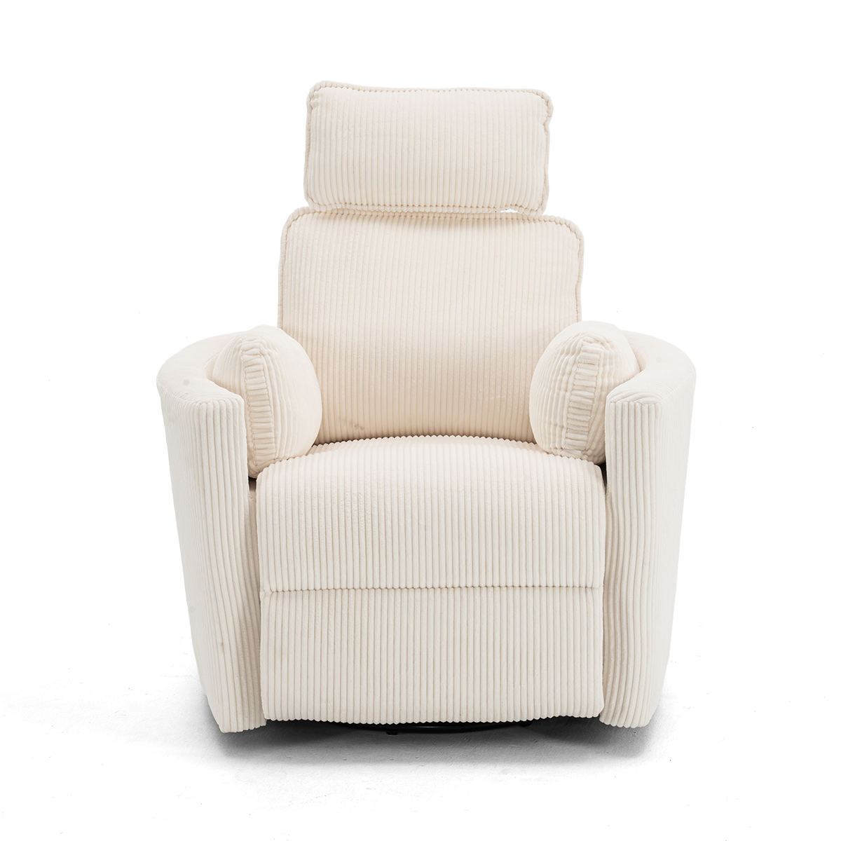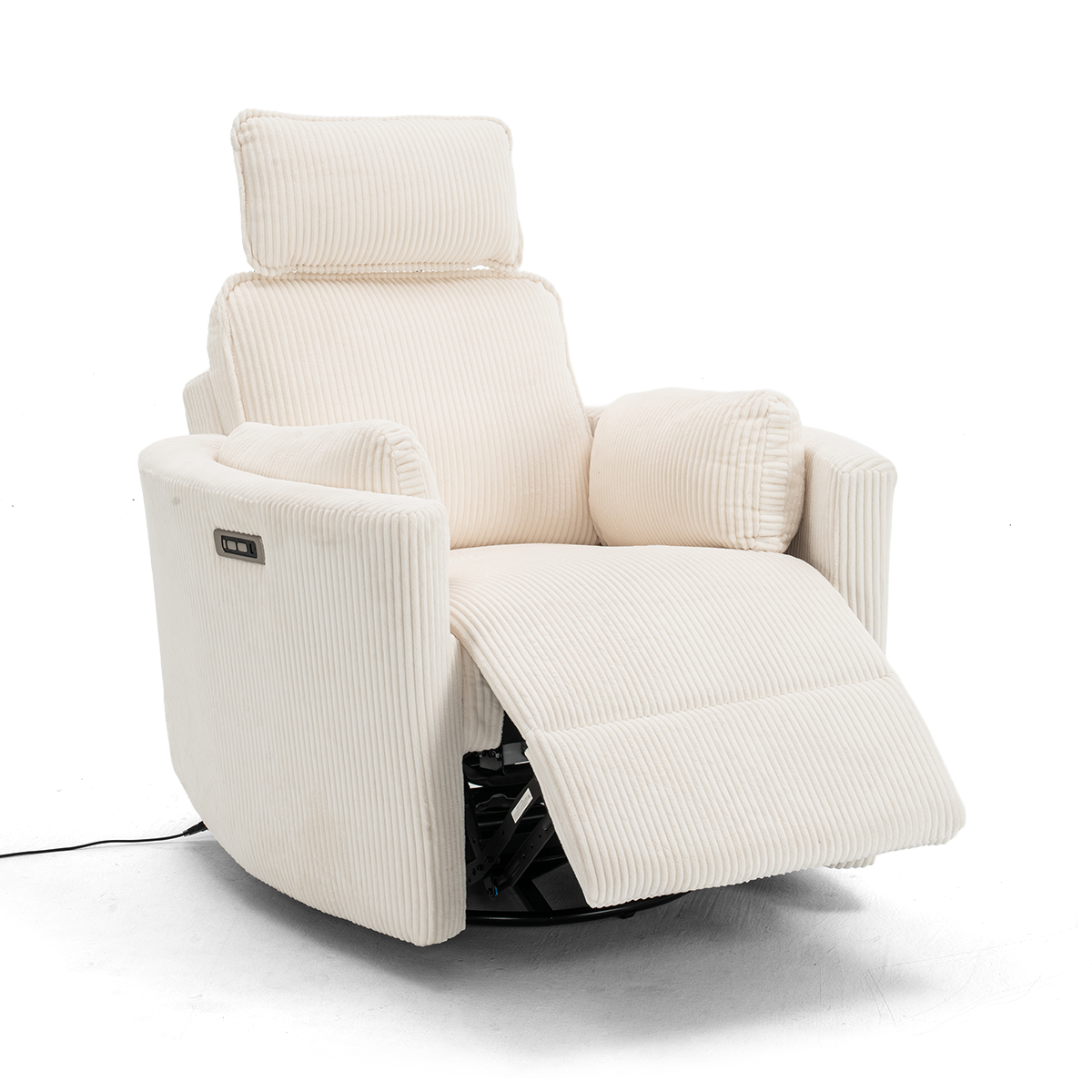 Elektromos, dönthető relax fotel, forgó és hinta funkcióval, bézs kordbársony szövet