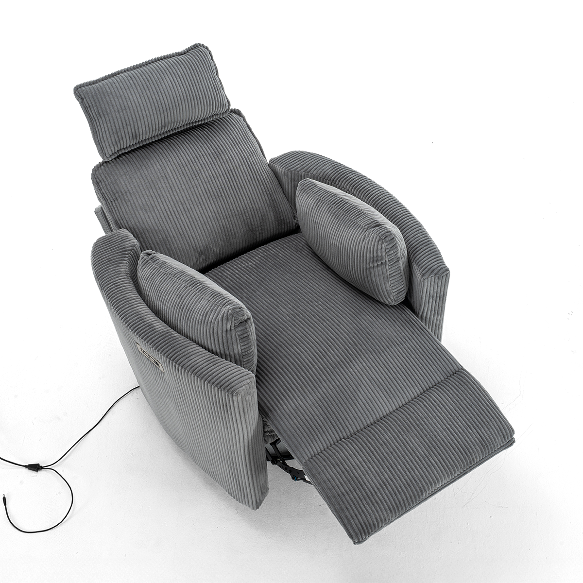 A fotel nemcsak kényelmes, hanem praktikus is. Beépített USB és Type-C csatlakozóval rendelkezik, így a mobiltelefon vagy más eszköz töltése pihenés közben is egyszerűen megoldható. Ez a funkció különösen hasznos a modern otthonokban, ahol fontos szempont a kényelem és a funkcionalitás együttes jelenléte.
