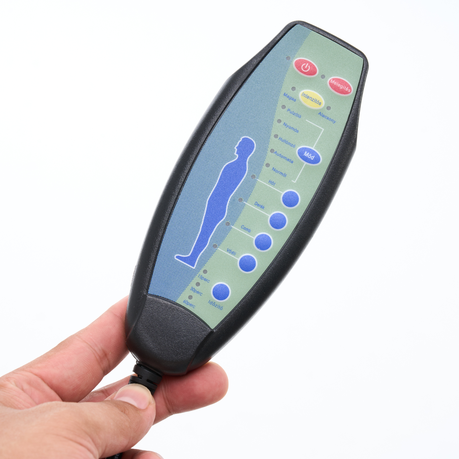 A fotelhez mellékelt távirányító magyar nyelvű, így a funkciók vezérlése egyszerű és intuitív. A felhasználók könnyedén állíthatják a masszázs intenzitását, választhatnak a különböző programok közül, valamint aktiválhatják a ringató vagy forgatható funkciókat, mindezt anélkül, hogy bonyolult menüket kellene navigálniuk.