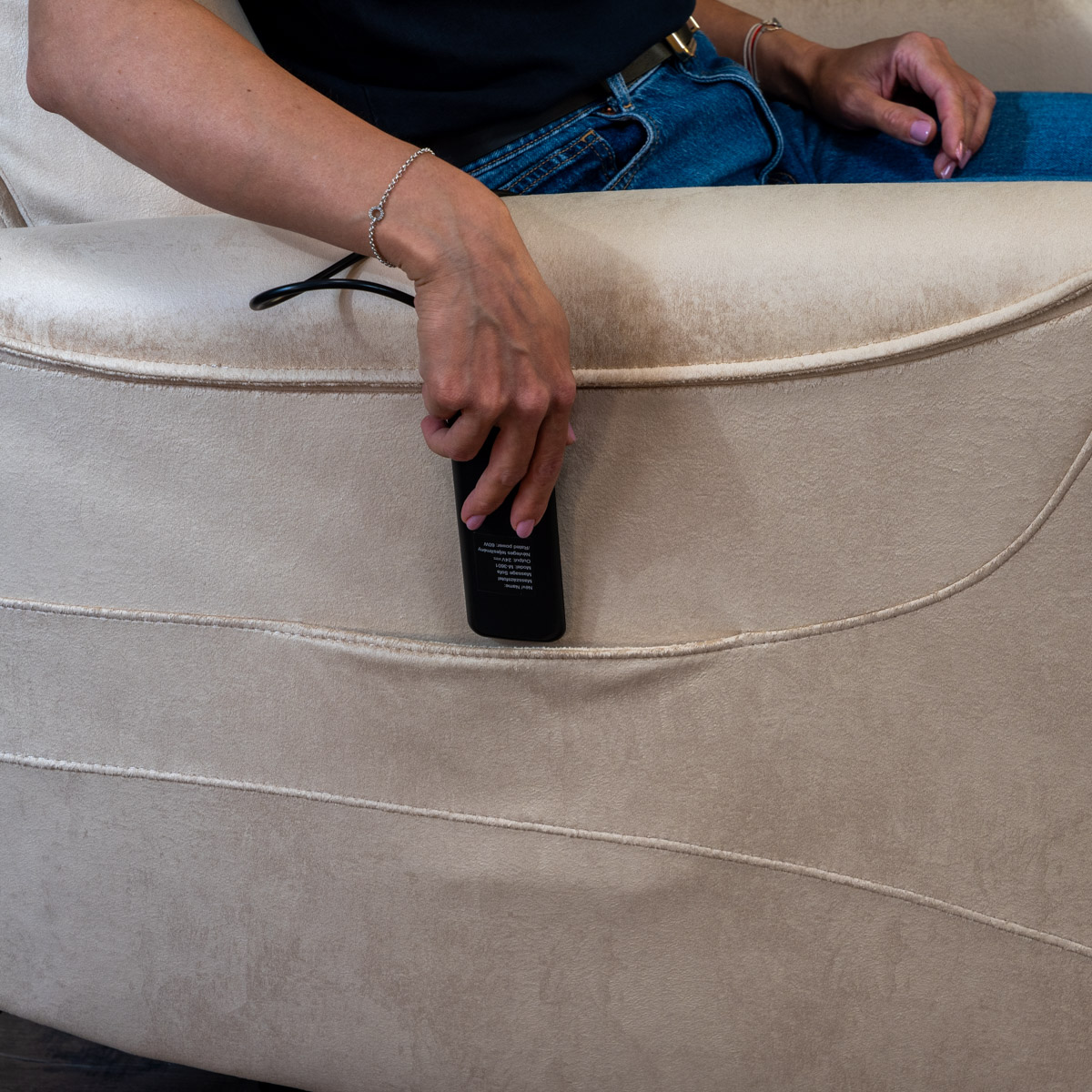 Elektromos működtetés: Ez a relax fotel egy elektromosan működtetett vázzal rendelkezik, amely könnyedén beállítható a kívánt pozícióba. A háttámla és a lábtartó egy mozdulattal, egyszerre mozgatható fel és le, így gyorsan megtalálhatja a tökéletes fekvő pozíciót.