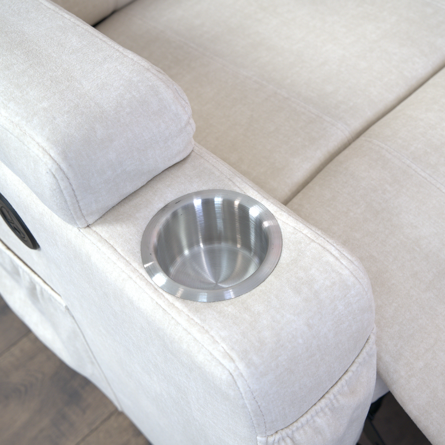 A fotel további kényelmi funkciója a rozsdamentes acélból készült pohártartó, amely ideális helyet biztosít kedvenc italának anélkül, hogy aggódnia kellene a kiömlés miatt. Ez a praktikus kiegészítő nemcsak a komfortot növeli, hanem hozzájárul a fotel modern és elegáns megjelenéséhez is.