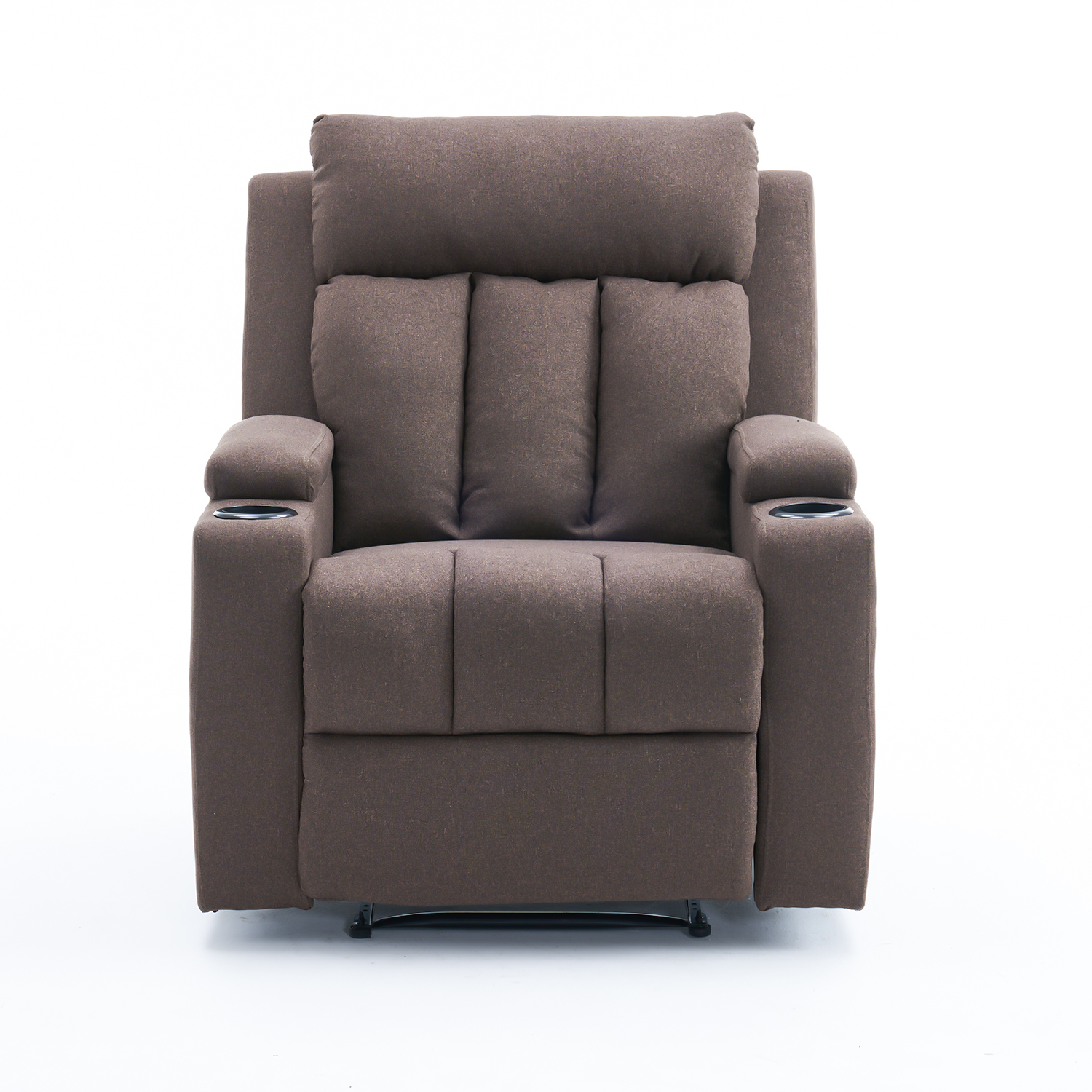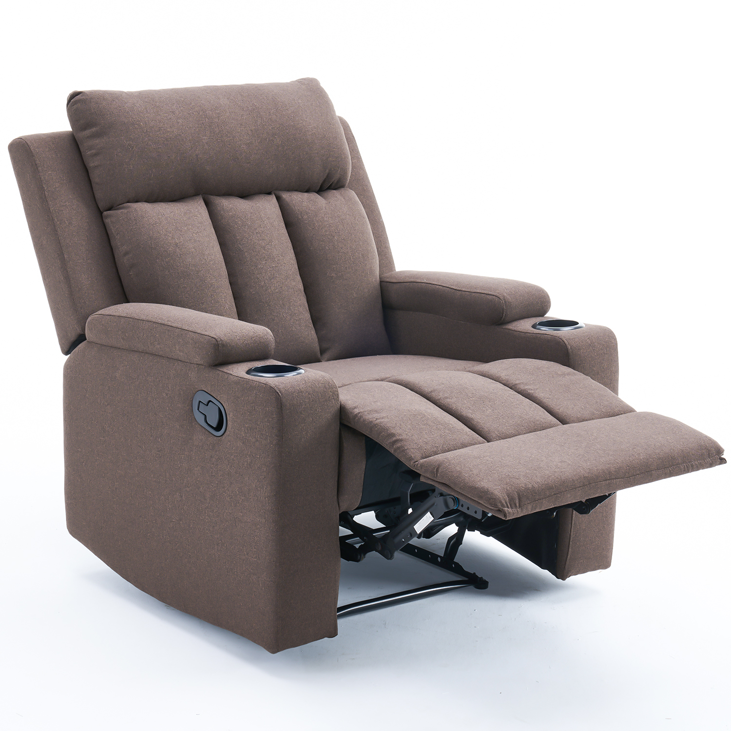 Manuális fekvőfotel, relax fotelágy két pohártartóval, sötétbarna szövet (JNF-MANUAL-FABRIC-DARK BROWN) JN-R8005A51