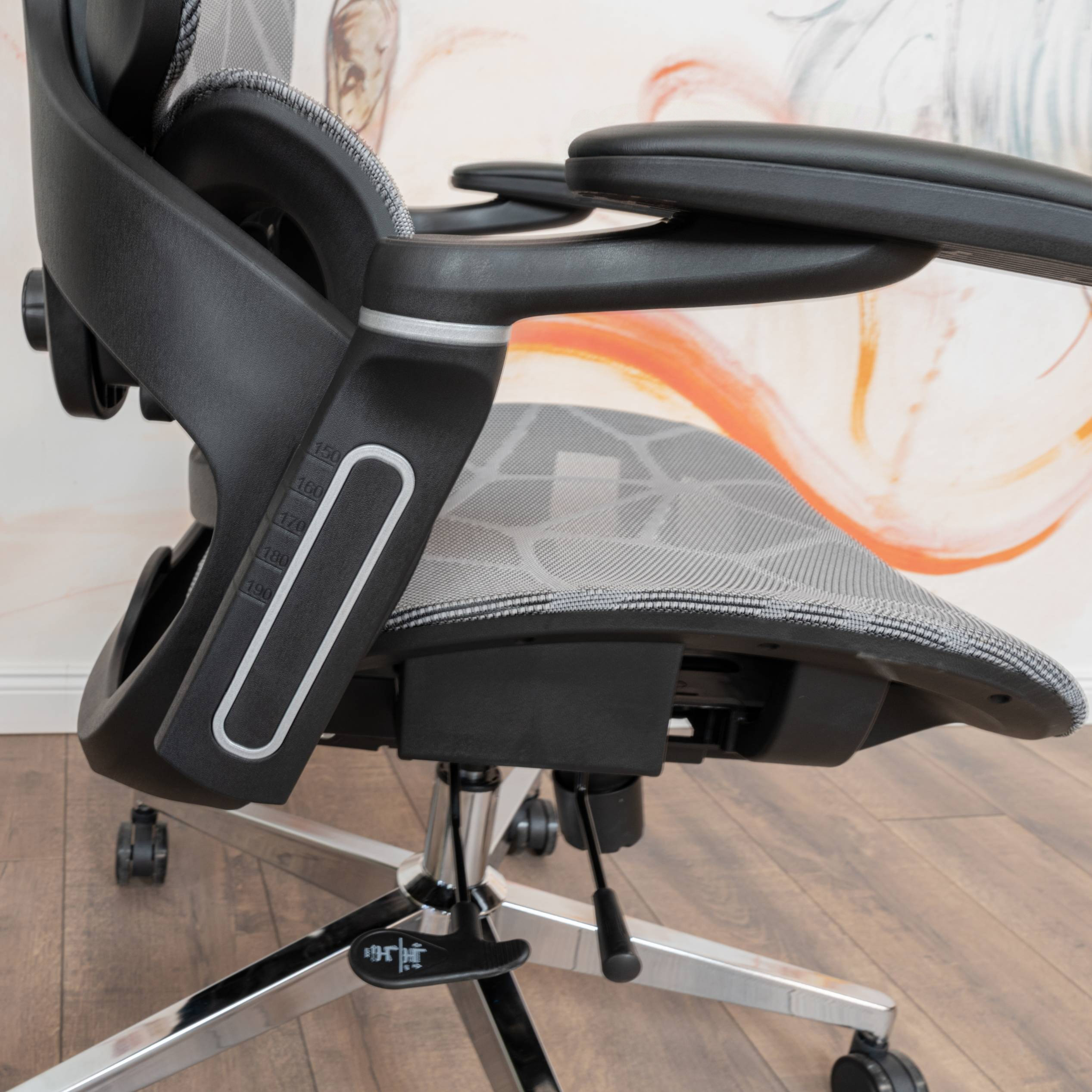 A szék magassága a Class 4 gázliftnek köszönhetően könnyedén állítható, így különböző testmagasságokhoz is kényelmesen igazodik. A fejtámla állítható, a deréktámasz pedig extra kényelmet biztosít. A háttámla mögött praktikus vállfa kapott helyet, amelyre felakaszthatjuk ruhadarabjainkat.